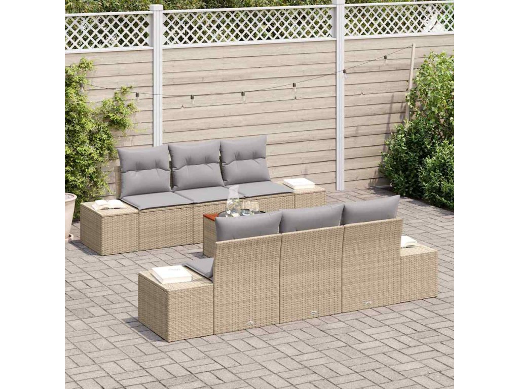 Multidom Súprava záhradných pohoviek 7 pcs Beige a svetlo šedá polyratan