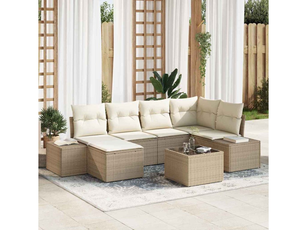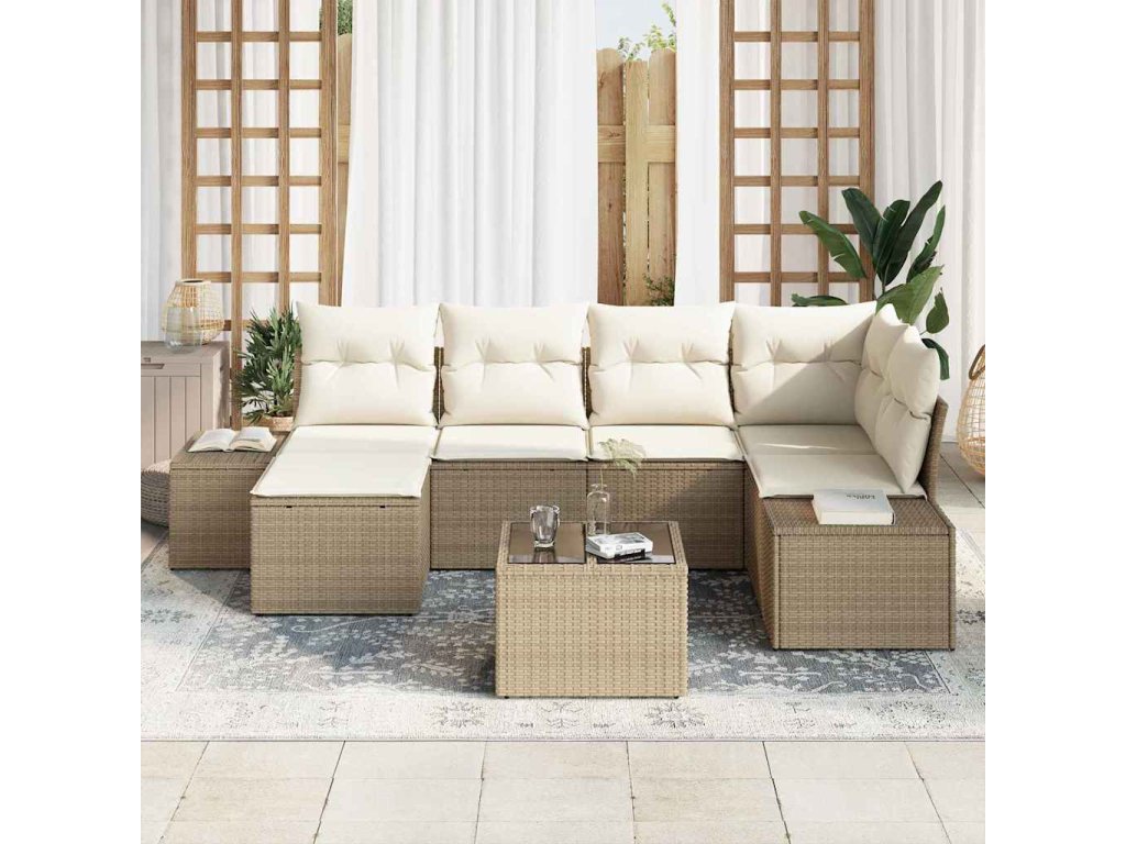 Multidom Súprava záhradných pohoviek 7 pcs Béžová a krémová polyratan