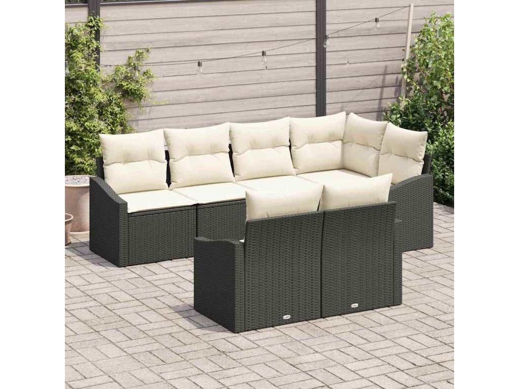 Multidom Súprava záhradných pohoviek 7 pcs Čierna a biela polyratan