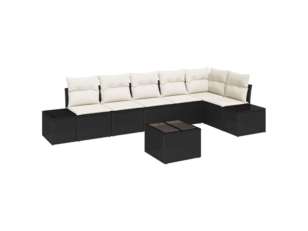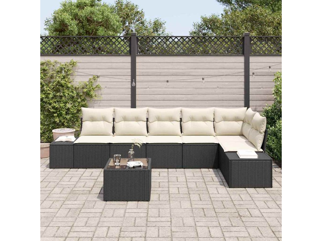 Multidom Súprava záhradných pohoviek 7 pcs Čierna a krémová polyratan
