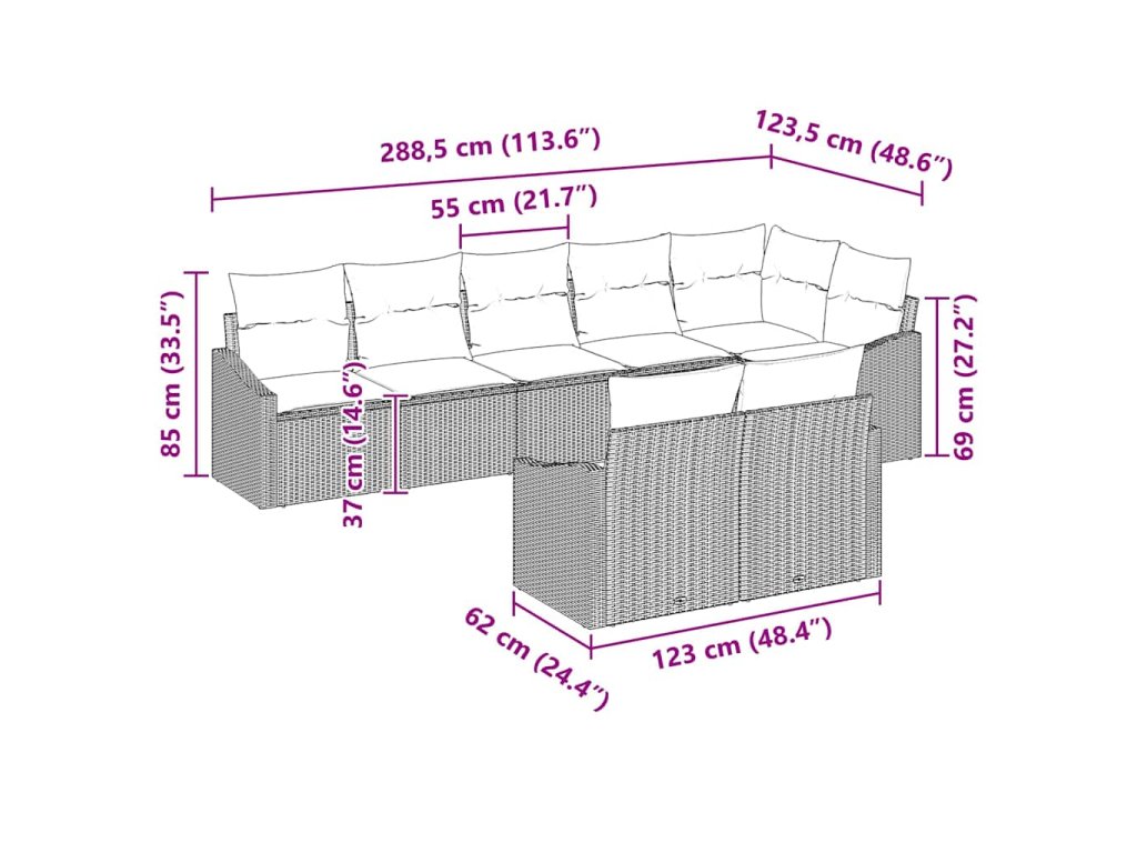 - 4 x Ramená pohovky: 62 x 55 x 85 cm (D x Š x V)