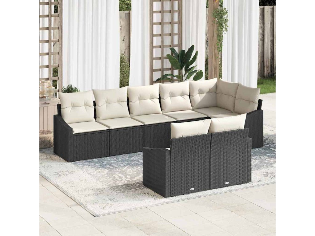 Multidom Súprava záhradných pohoviek 8 pcs Čierna a biela polyratan