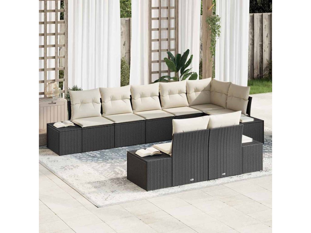 Multidom Súprava záhradných pohoviek 8 pcs Čierna a krémová Poly ratan