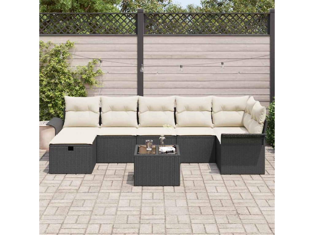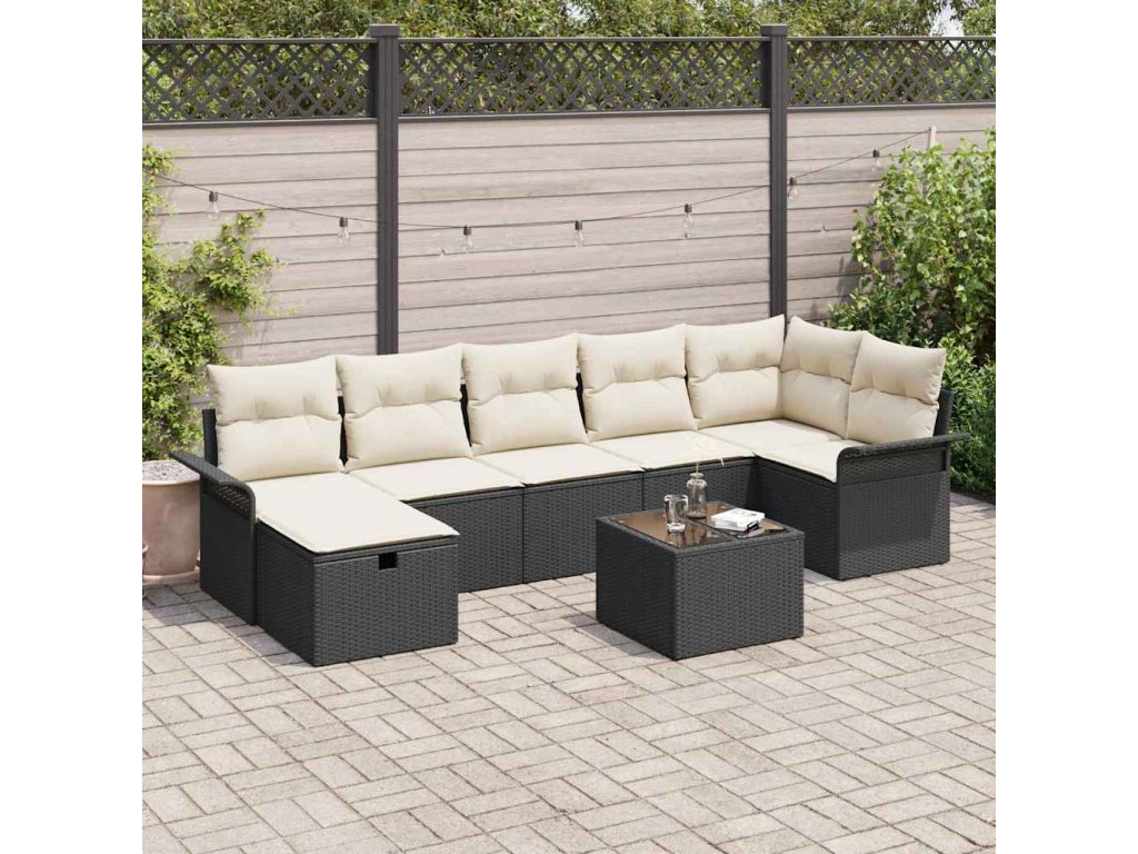 Multidom Súprava záhradných pohoviek 8 pcs Čierna a krémová polyratan