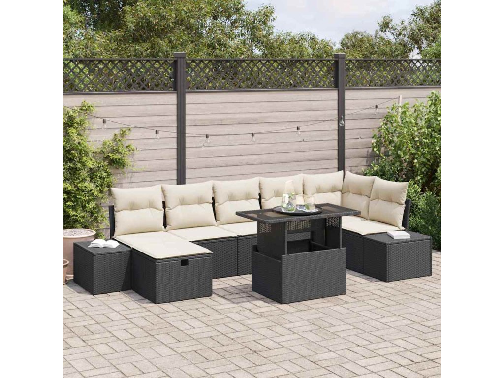 Multidom Súprava záhradných pohoviek 8 pcs Čierna polyratan