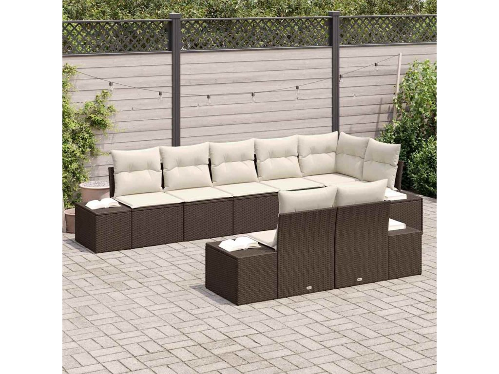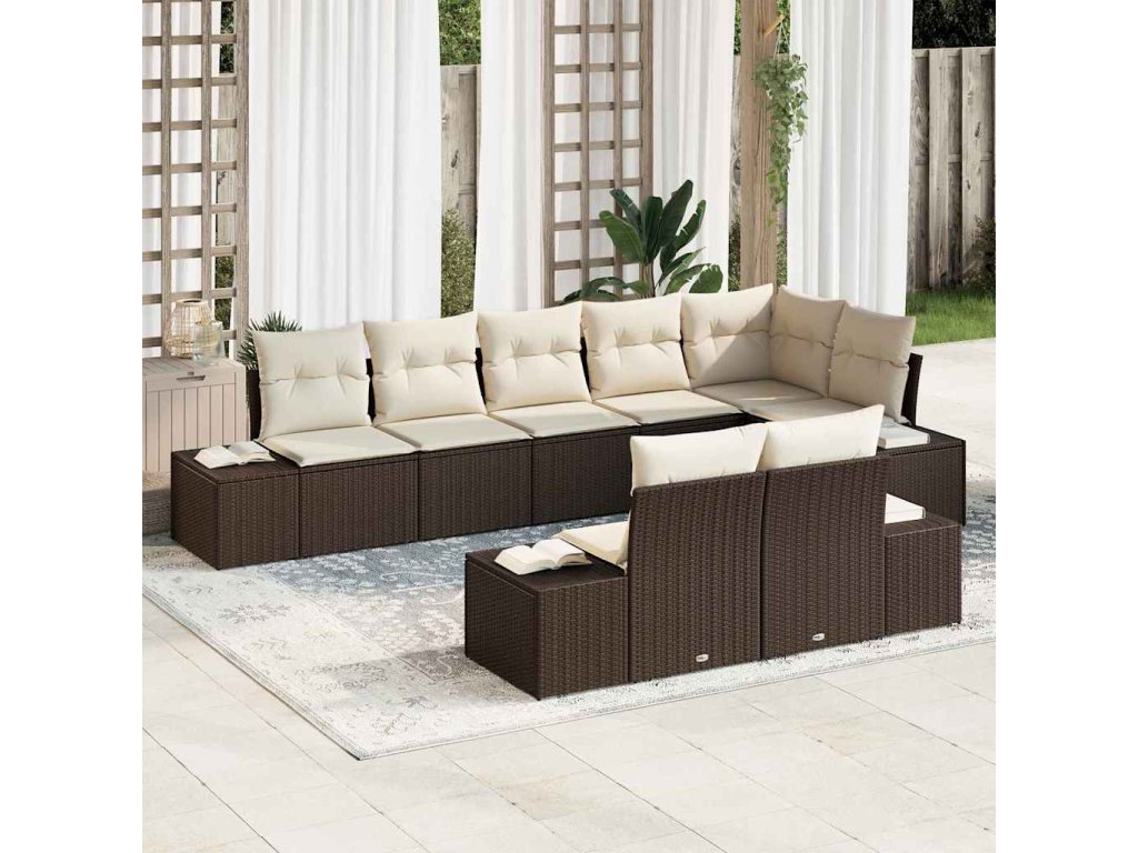 Multidom Súprava záhradných pohoviek 8 pcs Hnedá a smotanová Poly ratan