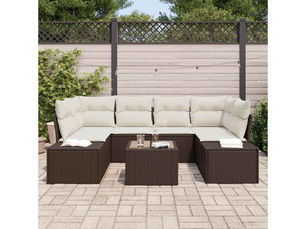 Multidom Súprava záhradných pohoviek 8 pcs Hnedá a smotanová polyratan