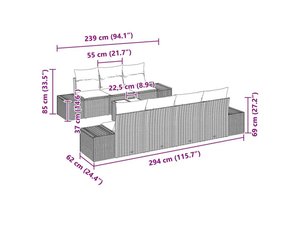 Súprava záhradného nábytku z poly ratanového materiálu prináša eleganciu a funkčnosť do každého vonkajšieho prostredia so svojím modulárnym dizajnom. Tento skvelý set, zložený z kvalitných materiálov, poskytuje dostatok miesta na relaxáciu a zábavu. Jeho jednoduché línie a elegantné krivky robia z neho perfektný doplnok do záhrad alebo na terasy, ideálne na posedenie s priateľmi alebo na chvíľku pre seba. S jeho moderným vzhľadom tento set ponúka všetko - funkčnosť aj štýlovosť, a vylepší akýkoľvek záhradný priestor.