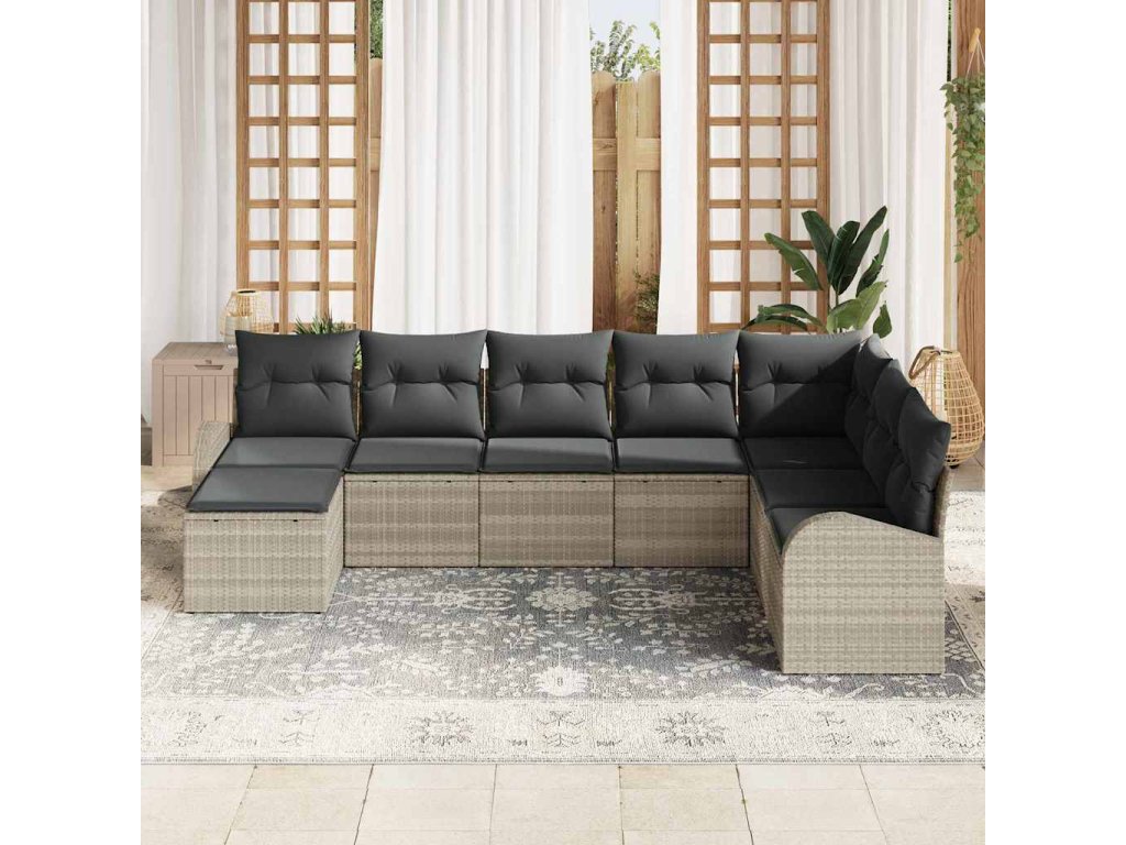 Multidom Súprava záhradných pohoviek 8 pcs Svetlosivá Poly ratan