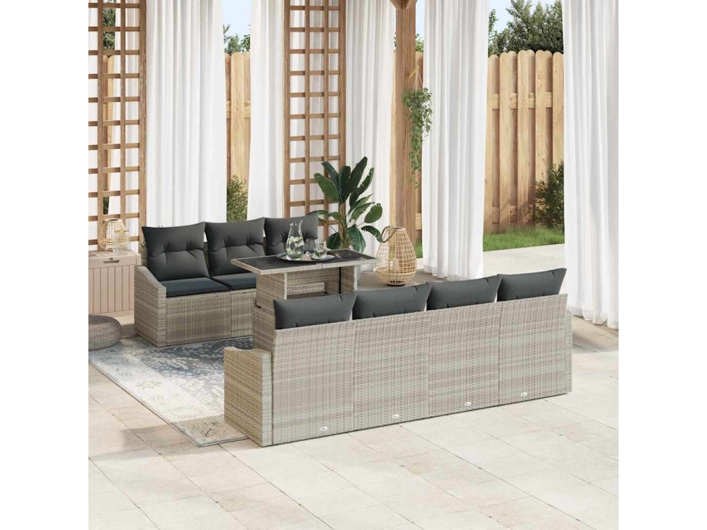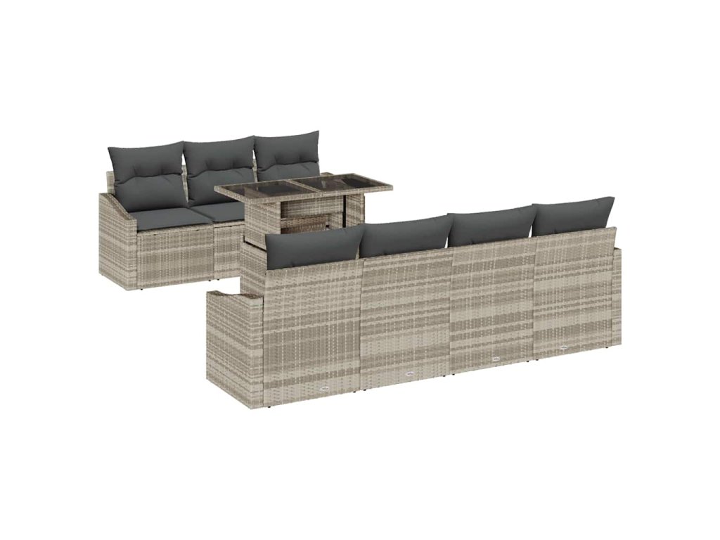 Multidom Súprava záhradných pohoviek 8 pcs Svetlosivá polyratan