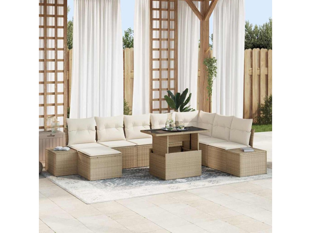 Multidom Súprava záhradných pohoviek 9 pcs Béžová a krémová polyratan