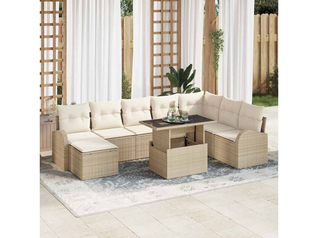 Multidom Súprava záhradných pohoviek 9 pcs Béžová a krémová polyratan