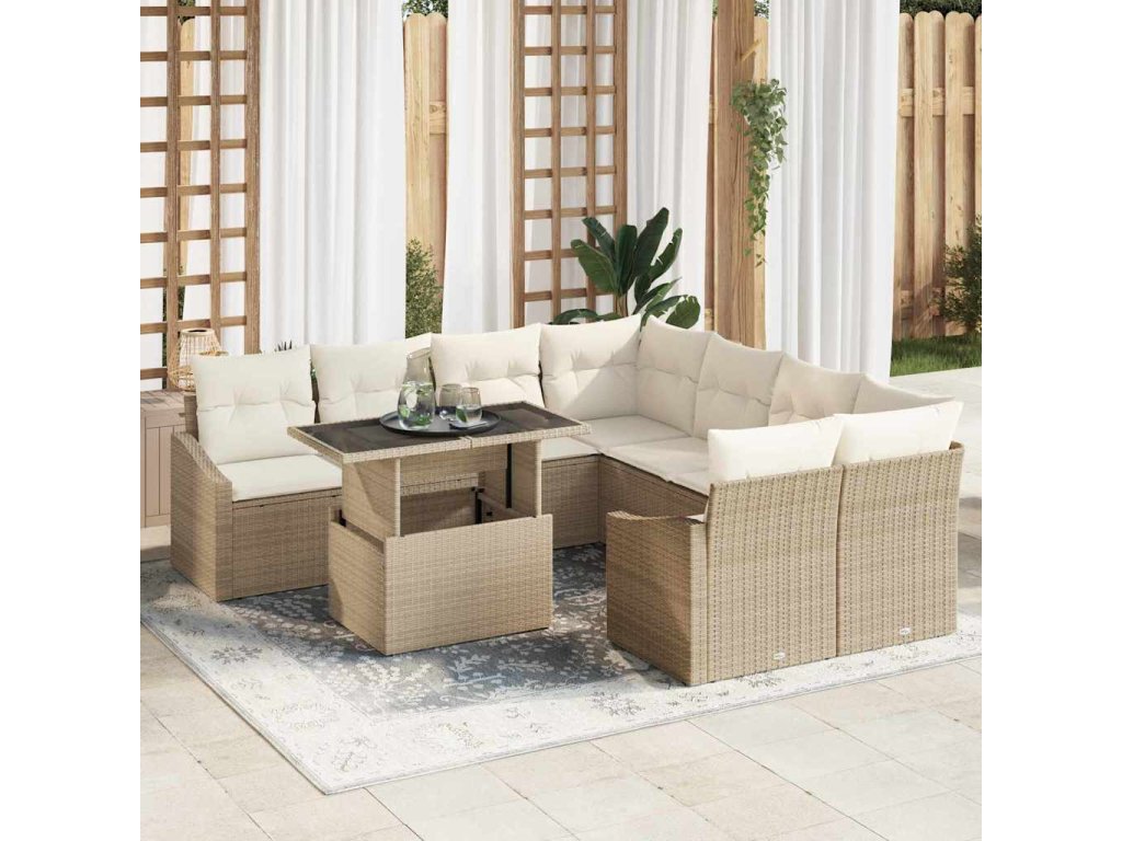 Multidom Súprava záhradných pohoviek 9 pcs Béžová a krémová polyratan