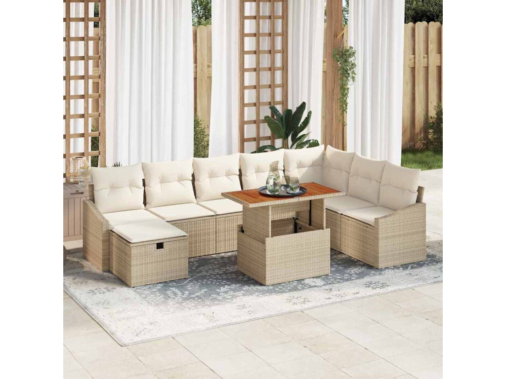 Multidom Súprava záhradných pohoviek 9 pcs Béžová polyratan