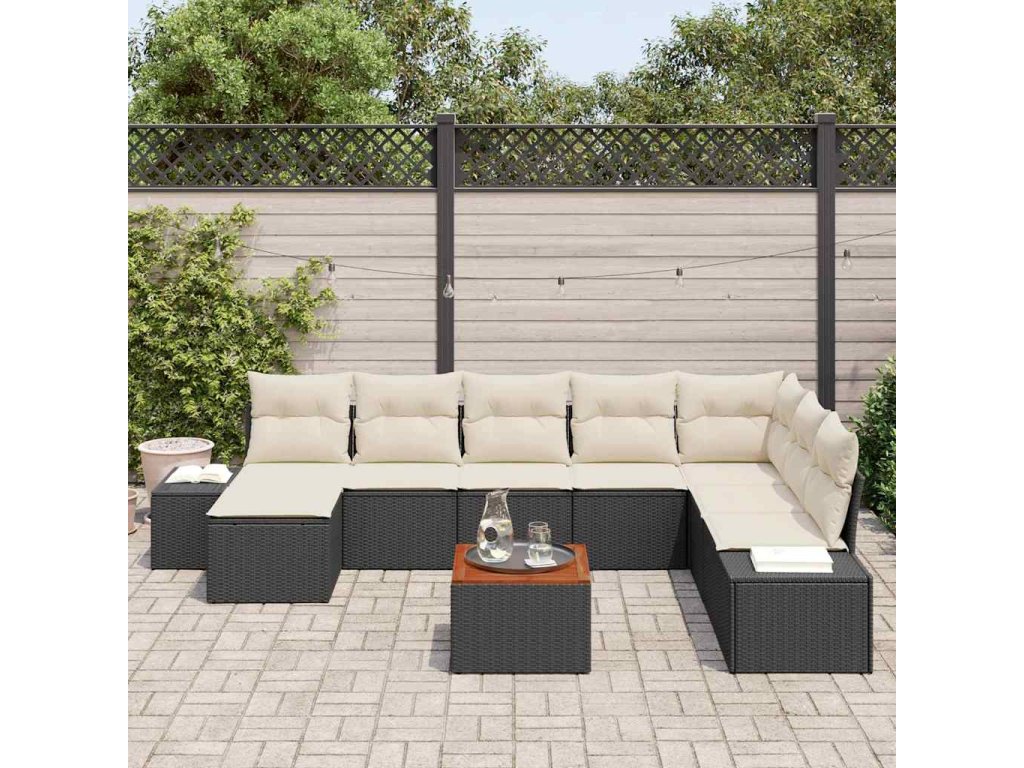 Multidom Súprava záhradných pohoviek 9 pcs Čierna a biela