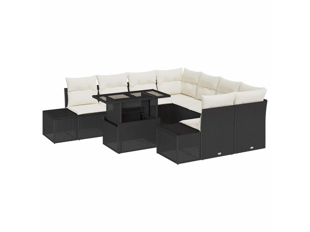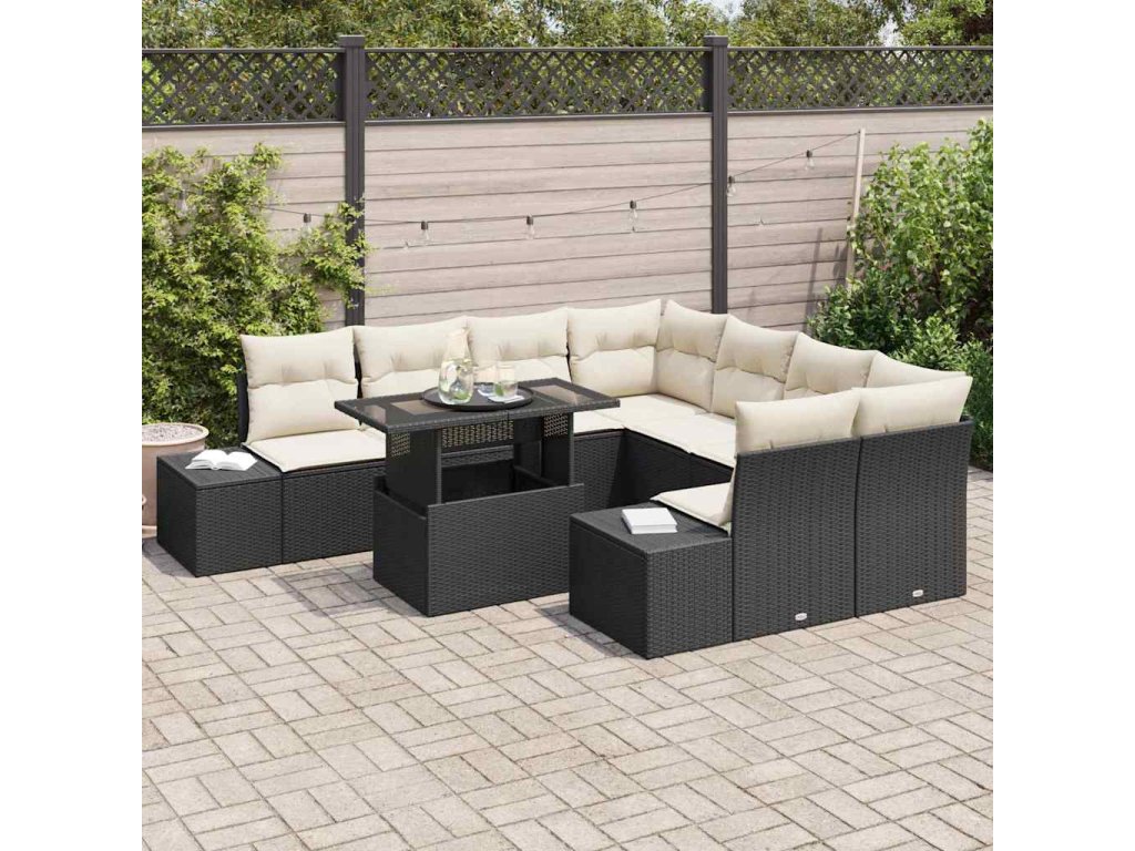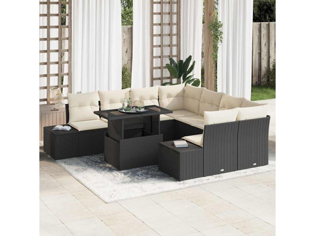 Multidom Súprava záhradných pohoviek 9 pcs Čierna a krémová polyratan