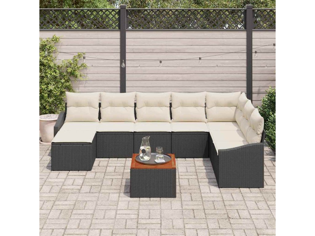 Multidom Súprava záhradných pohoviek 9 pcs Čierna a krémová polyratan