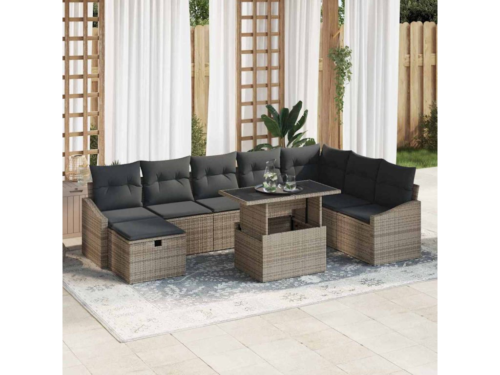Multidom Súprava záhradných pohoviek 9 pcs Sivá polyratan