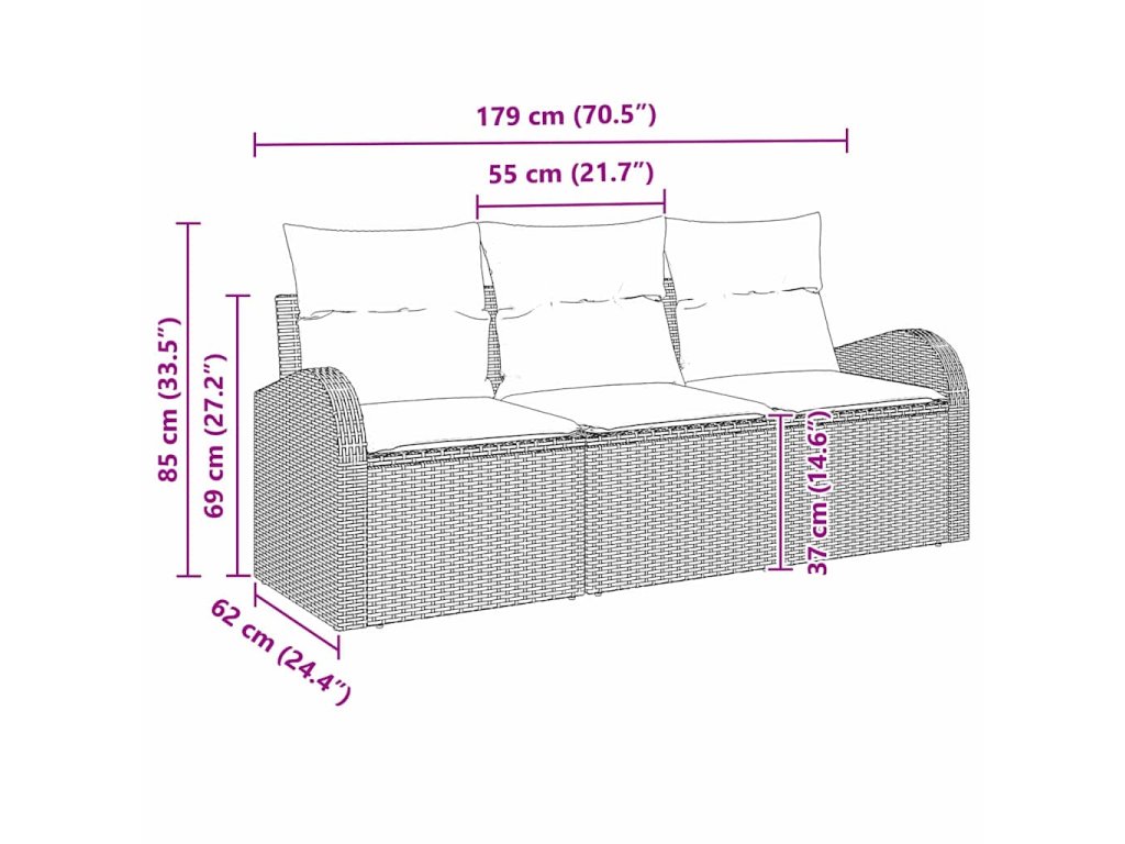 Tento moderný set pohoviek ponúka dokonalú rovnováhu pohodlia a štýlu pre vonkajšie sedenie v každej záhrade či na terase. Jeho modulárny dizajn umožňuje flexibilné usporiadania, prispôsobiteľné rôznym stretnutiam alebo pokojné chvíle osamote pod slnkom. Minimalistický vzhľad dodáva moderný pocit, ktorý spojuje funkčnosť a eleganciu. Kombinácia poly ratanu a polyesteru pridáva textúru a štýl, čím vytvára stredobod, ktorý skvele dopĺňa každý vonkajší dekor.