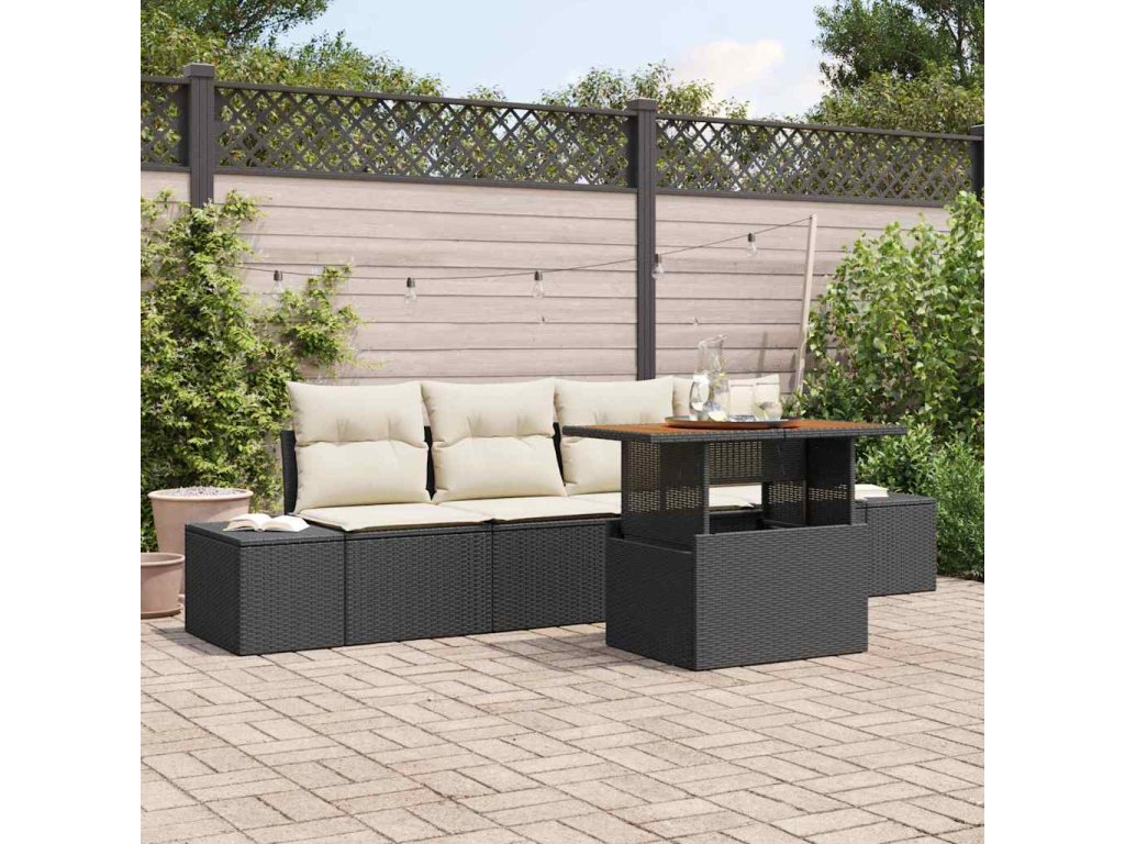 Multidom Súprava záhradných pohoviek s úložiskom 5 pcs Čierna Poly ratan