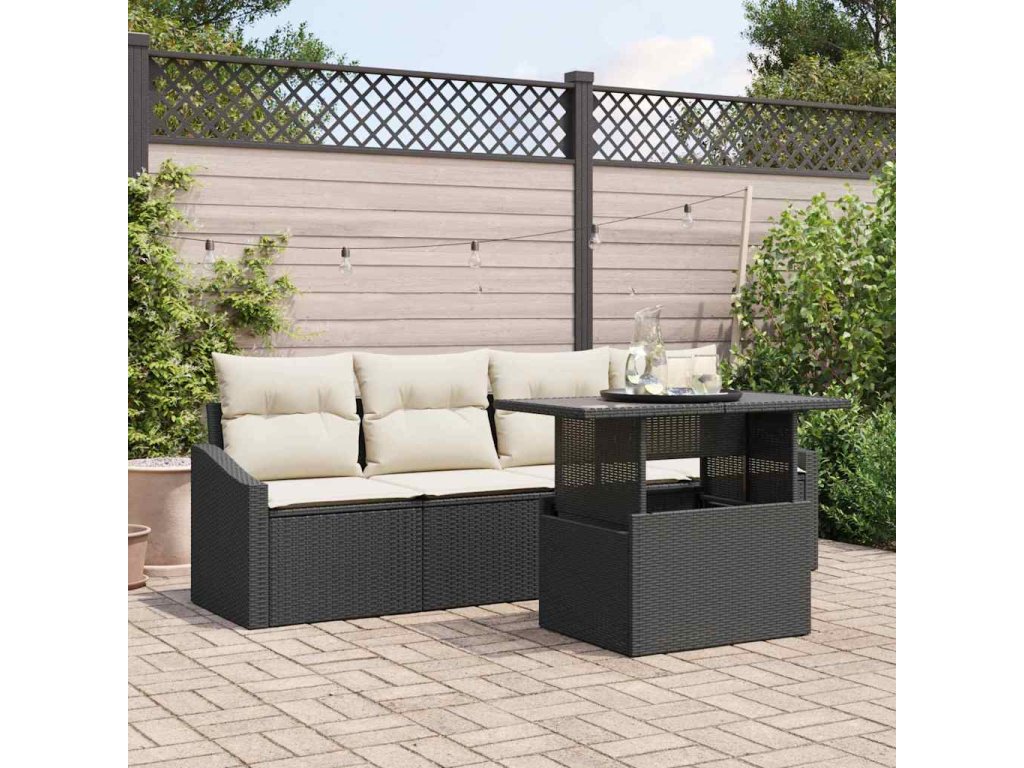 - Integrované komponenty Set má praktické prvky, ako je výškovo nastaviteľný stôl, ktorý sa dá jednoducho premeniť z kávového na jedálenský, prispôsobujúc sa rôznym potrebám. Opierky rúk, vyrobené z rovnakého poly ratanu, sú pohodlné a štýlové.