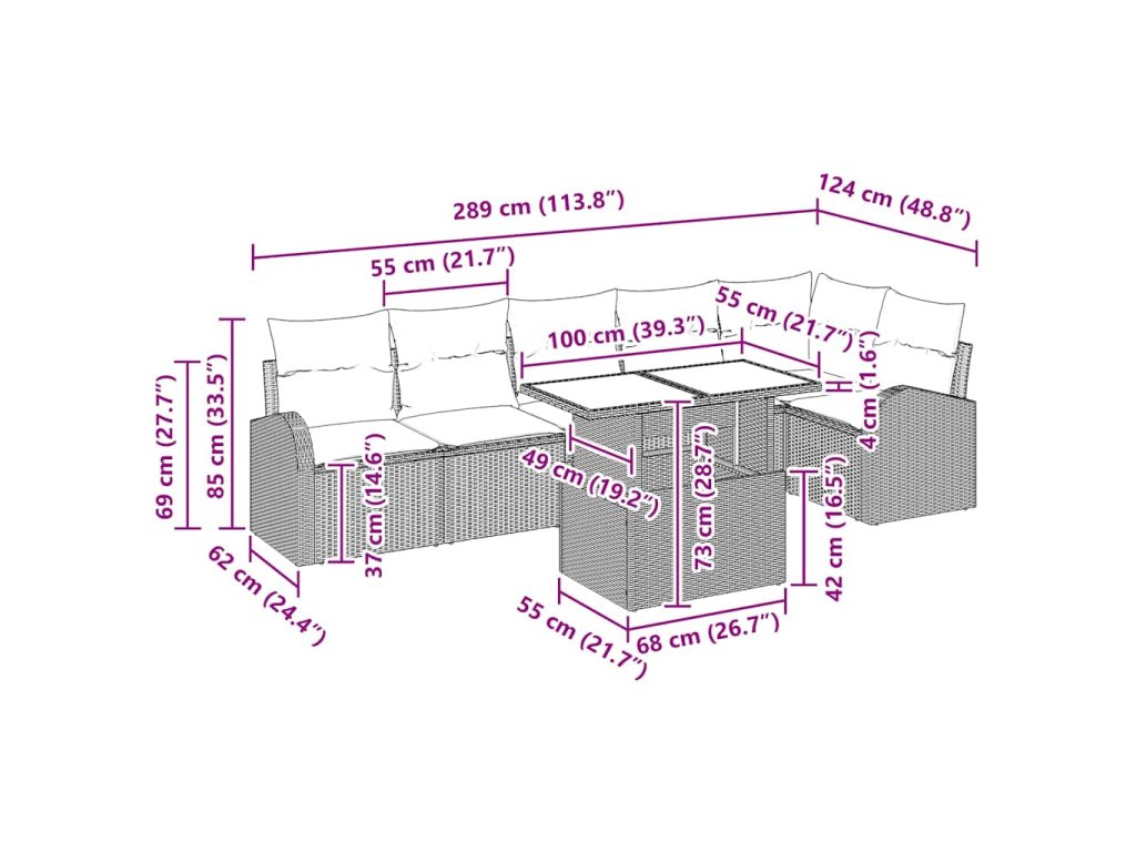 - Materiály: Kombinácia poly ratanu a polyesteru zabezpečuje oku lahodiaci vzhľad a vysokú odolnosť. Poly ratan prináša štýlový tkaný vzhľad a obranu voči UV žiareniu, takže zostane krásny a farebný aj na slnku. Polyester ešte viac zvyšuje odolnosť celej súpravy.