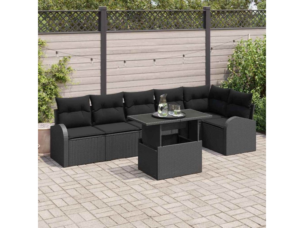 Multidom Súprava záhradných pohoviek s úložiskom 7 pcs Čierna polyratan