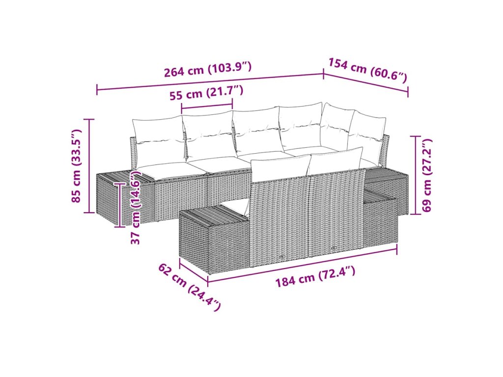 - 4 x Bočná pohovka: 92 x 62 x 69 cm (D x Š x V)