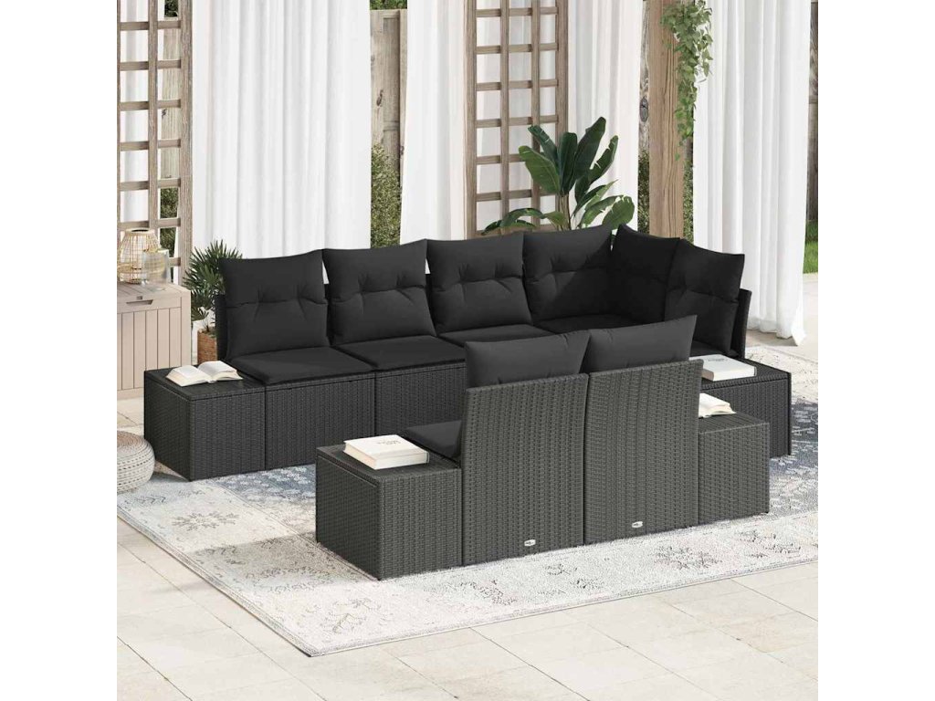 Multidom Súprava záhradných pohoviek s úložiskom 7 pcs Čierna polyratan