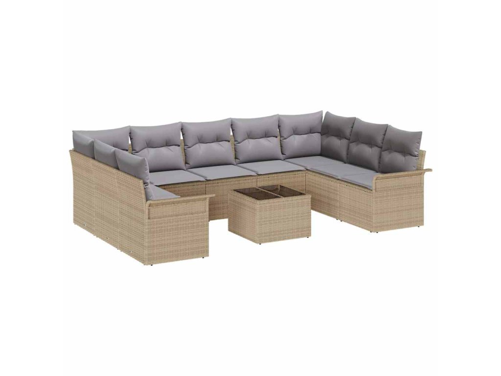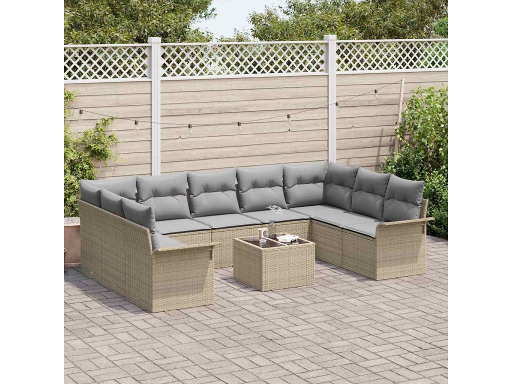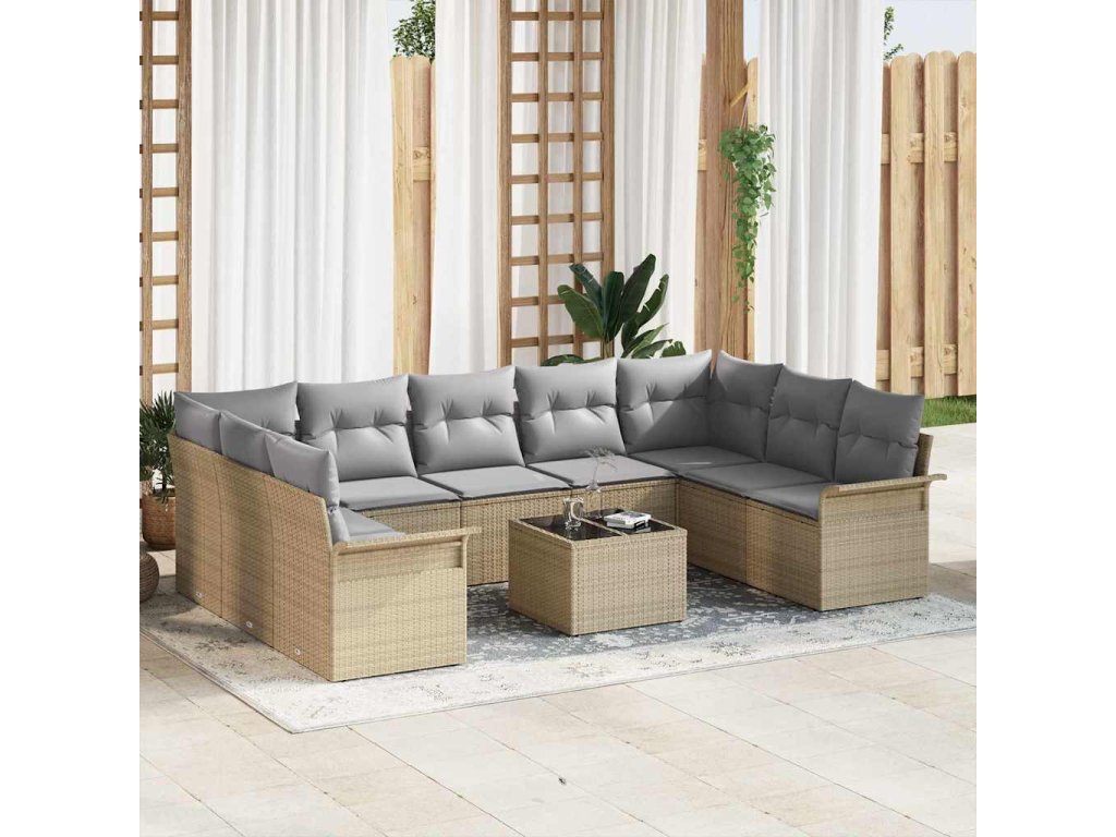 Multidom Súprava záhradných pohoviek s vankúšom 10 pcs Béžová polyratan