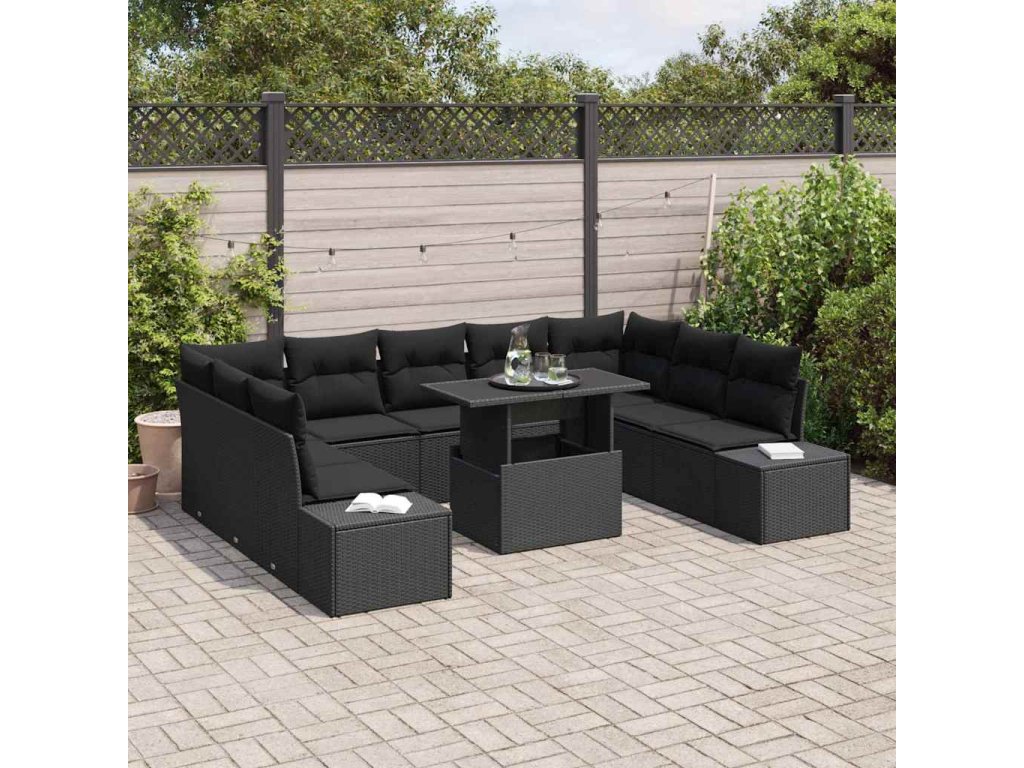 Multidom Súprava záhradných pohoviek s vankúšom 10 pcs Čierna polyratan
