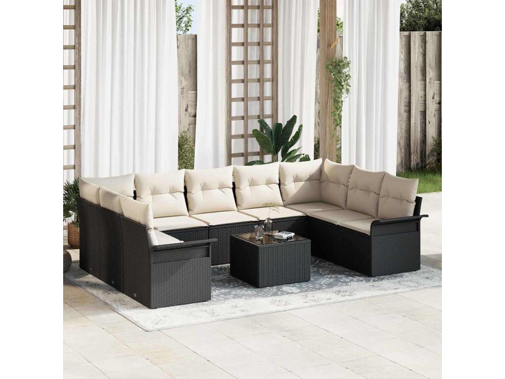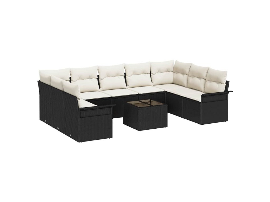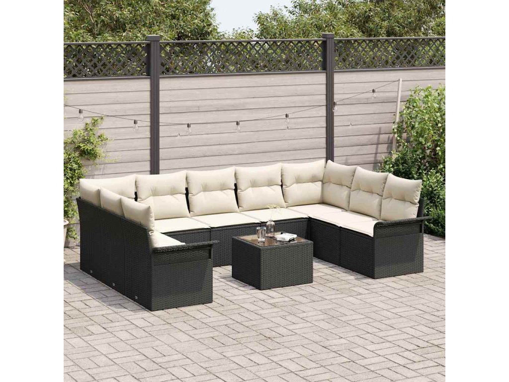 Multidom Súprava záhradných pohoviek s vankúšom 10 pcs Čierna polyratan