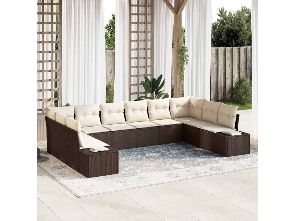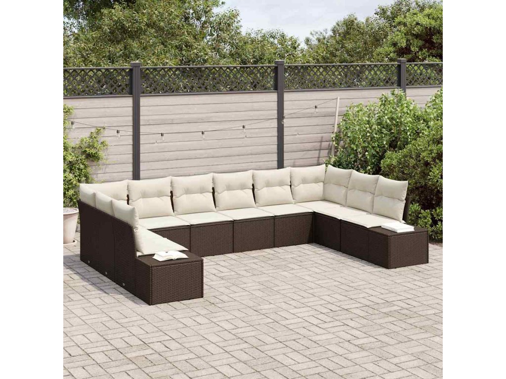 Multidom Súprava záhradných pohoviek s vankúšom 10 pcs Hnedá polyratan
