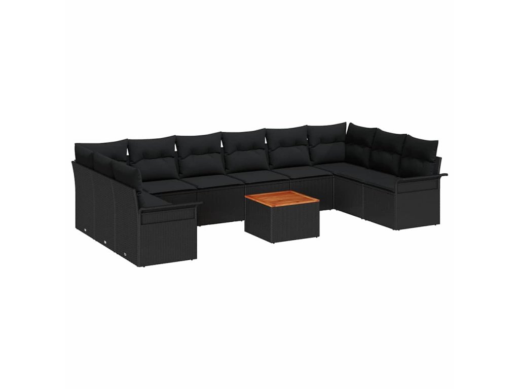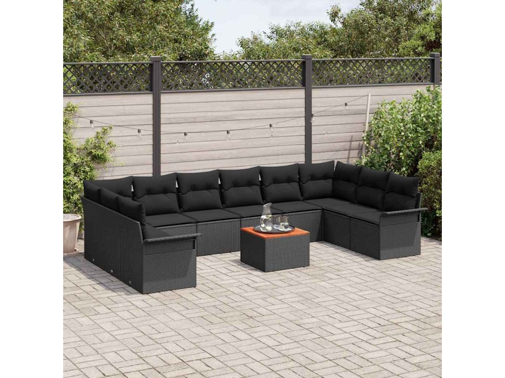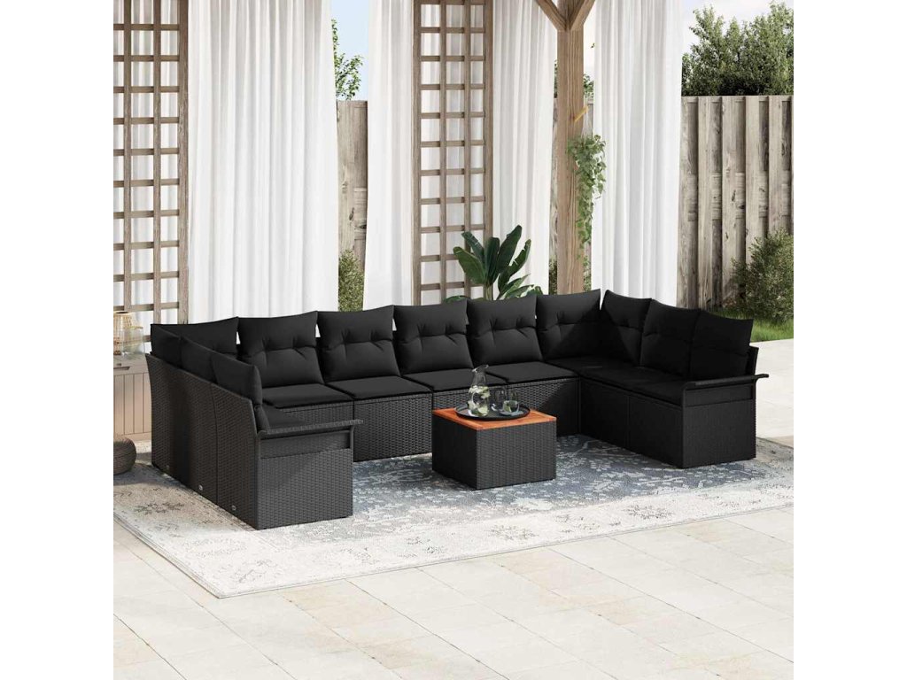 Multidom Súprava záhradných pohoviek s vankúšom 11 pcs Čierna polyratan