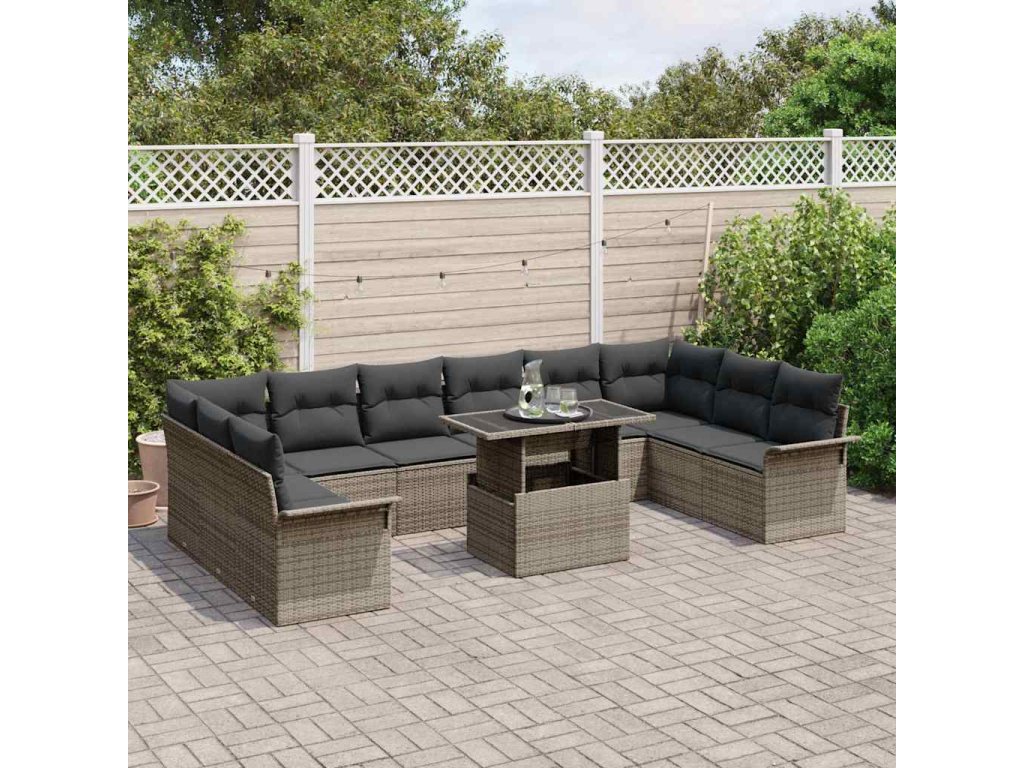 Multidom Súprava záhradných pohoviek s vankúšom 11 pcs Sivá Poly ratan