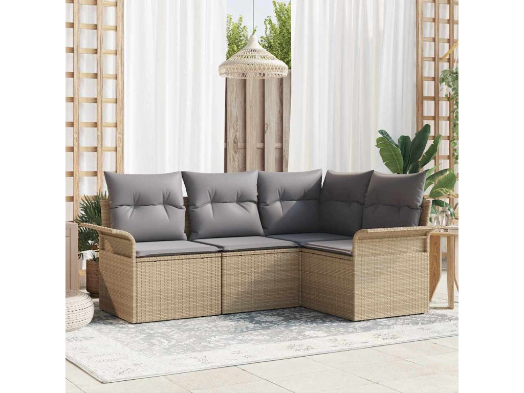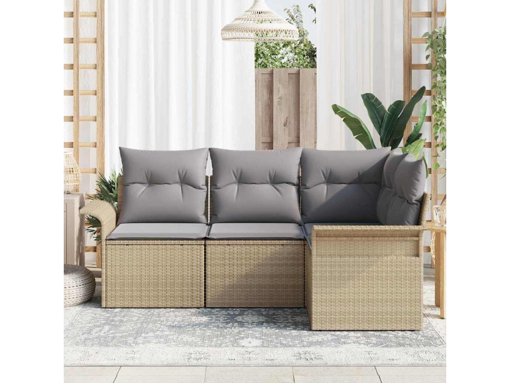 Multidom Súprava záhradných pohoviek s vankúšom 4 pcs Béžová polyratan