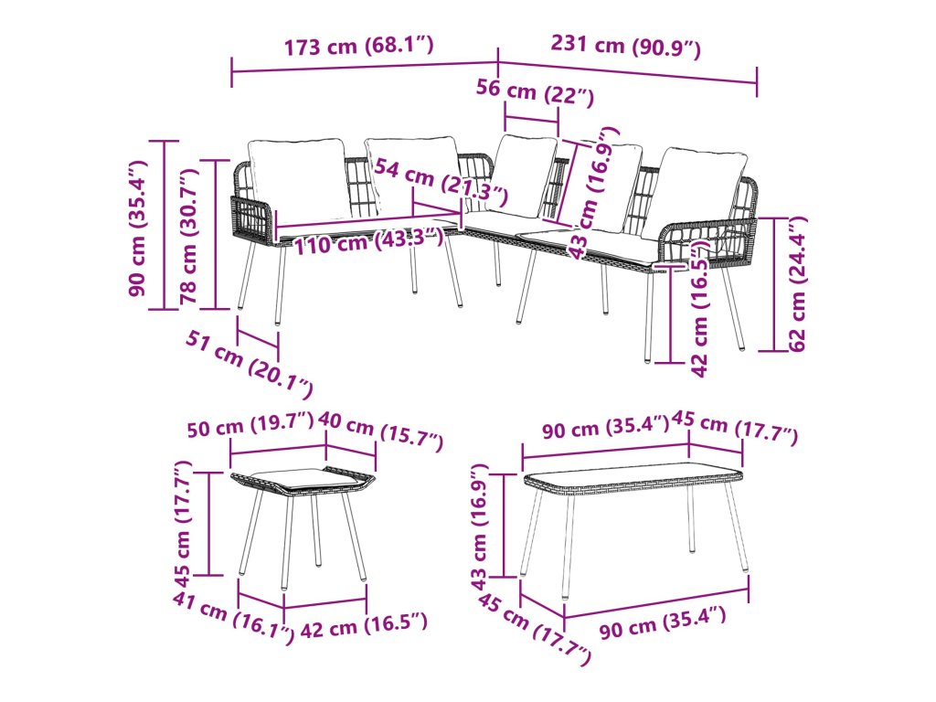- 1 x Záhradná pohovka: 231 x 173 x 90 cm (D x Š x V)