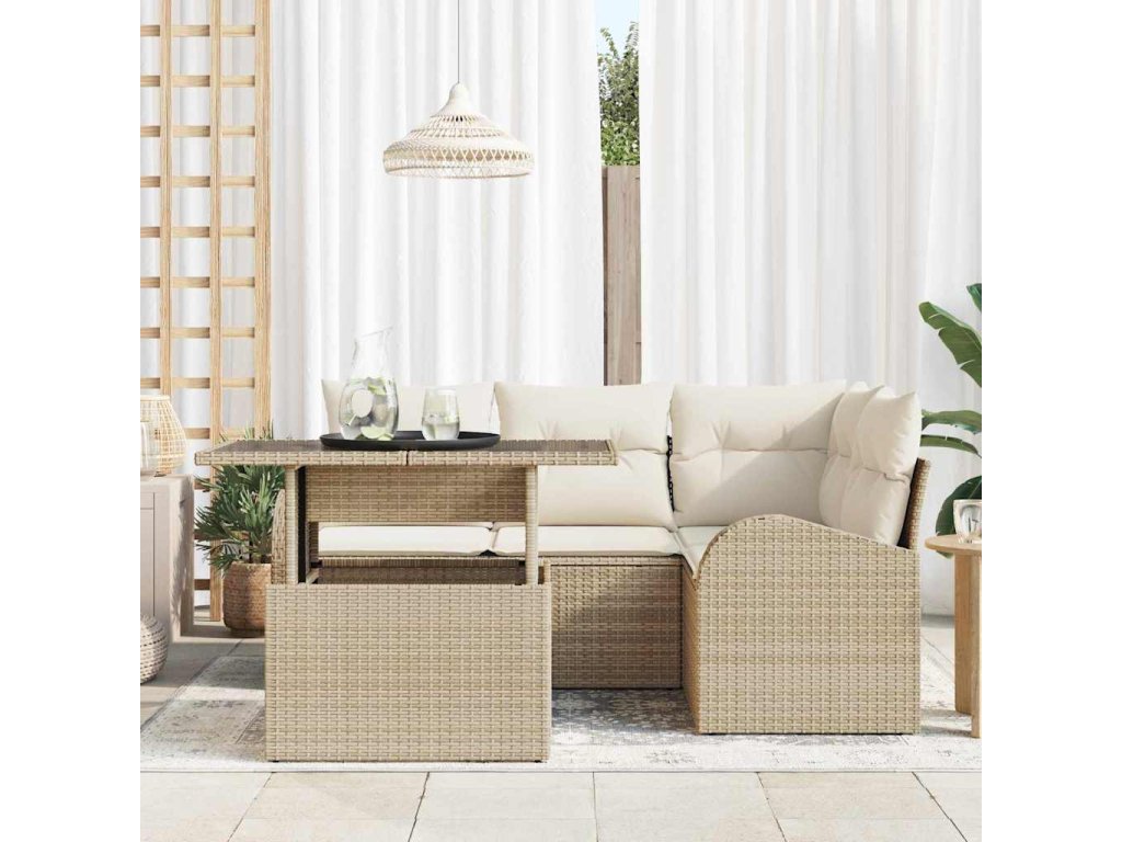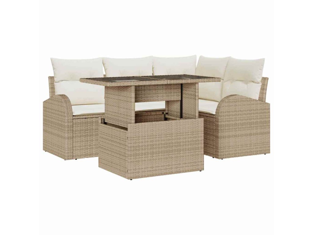 Multidom Súprava záhradných pohoviek s vankúšom 5 pcs Béžová polyratan