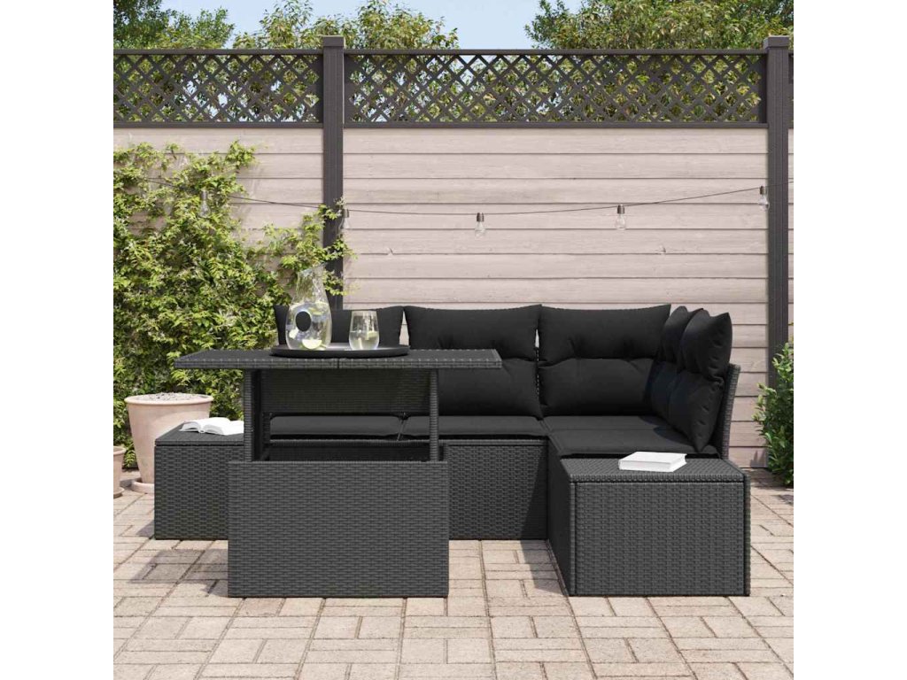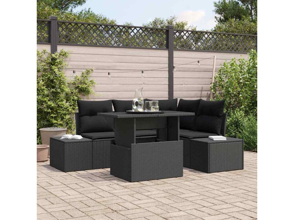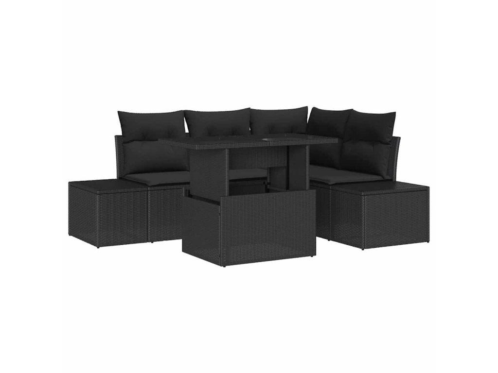 Multidom Súprava záhradných pohoviek s vankúšom 5 pcs Čierna polyratan