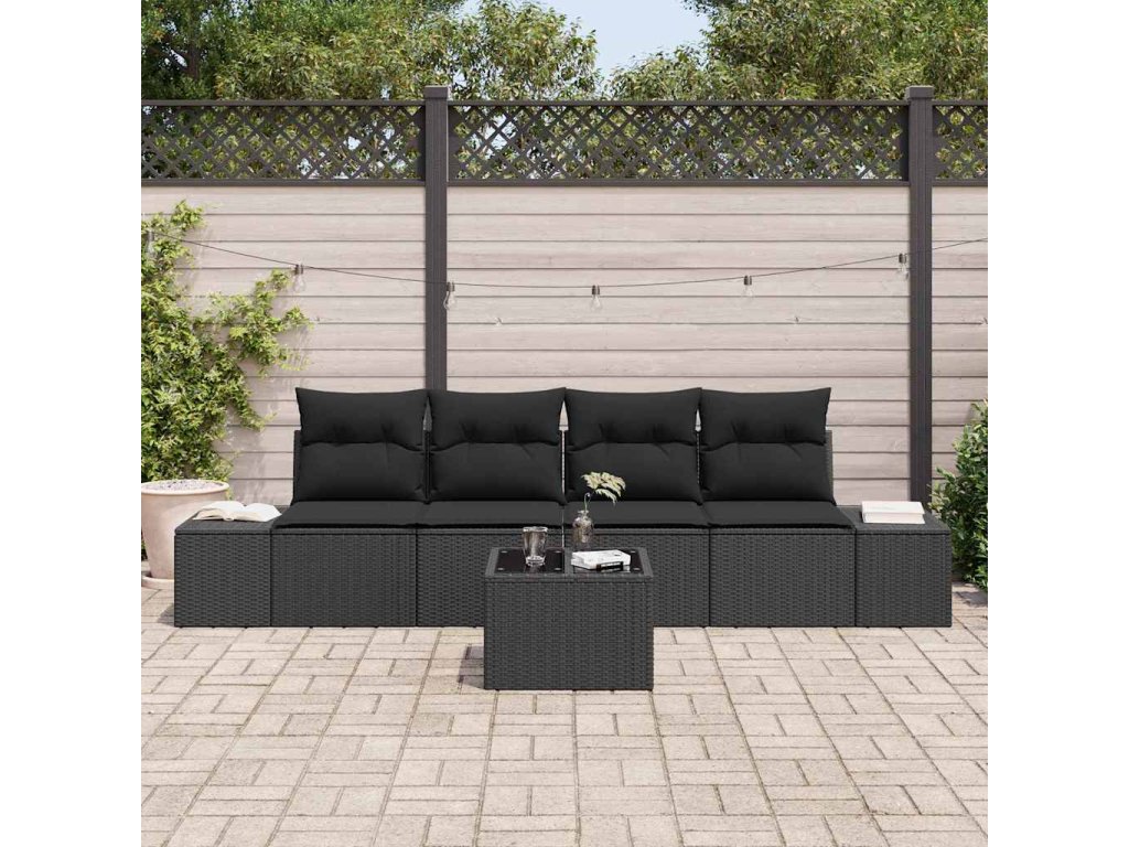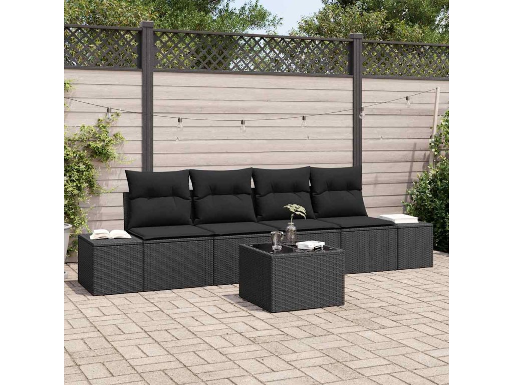 Multidom Súprava záhradných pohoviek s vankúšom 5 pcs Čierna polyratan
