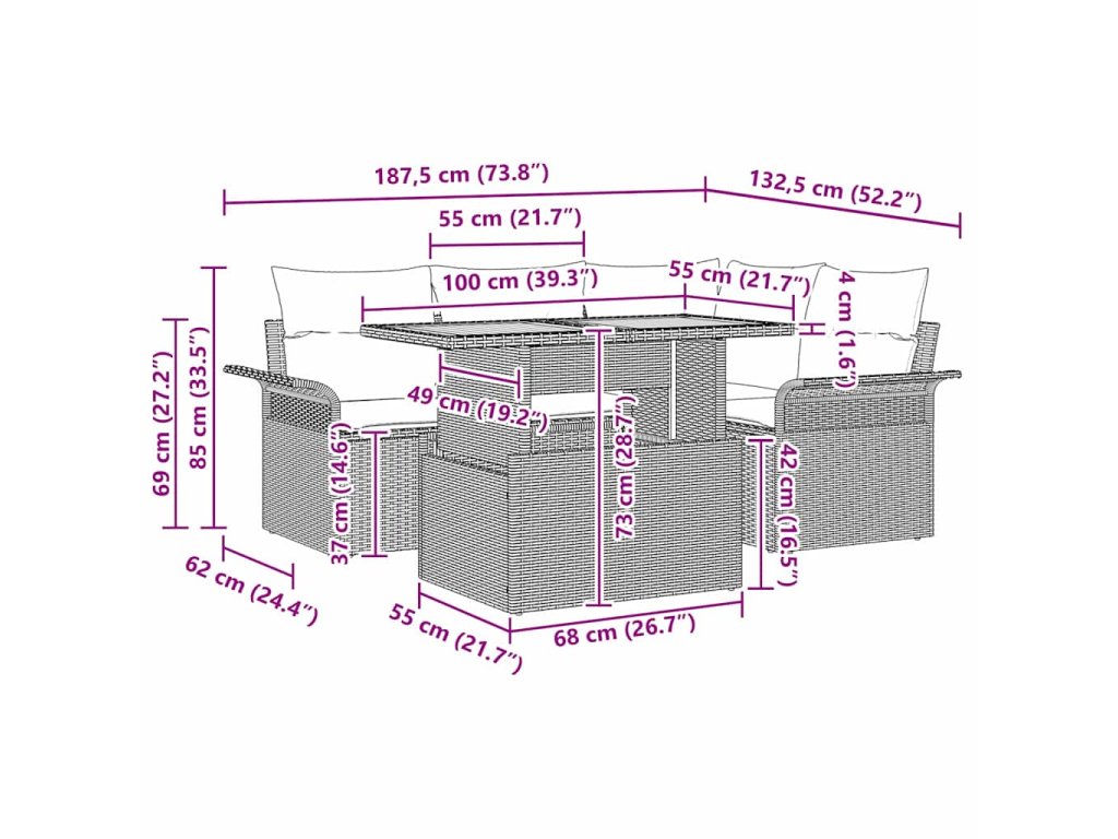 - Praktické úložné riešenia: Obsahuje integrované úložisko v armových pohovkách, rohu a stredových sedadlách, tento set maximalizuje funkčnosť a organizačný priestor. Skryté komory sú ideálne na ukladanie vankúšov, prikrývok alebo iných nevyhnutností, pričom udržujú váš vonkajší priestor uprataný a lákavý bez ohrozenia dizajnu.