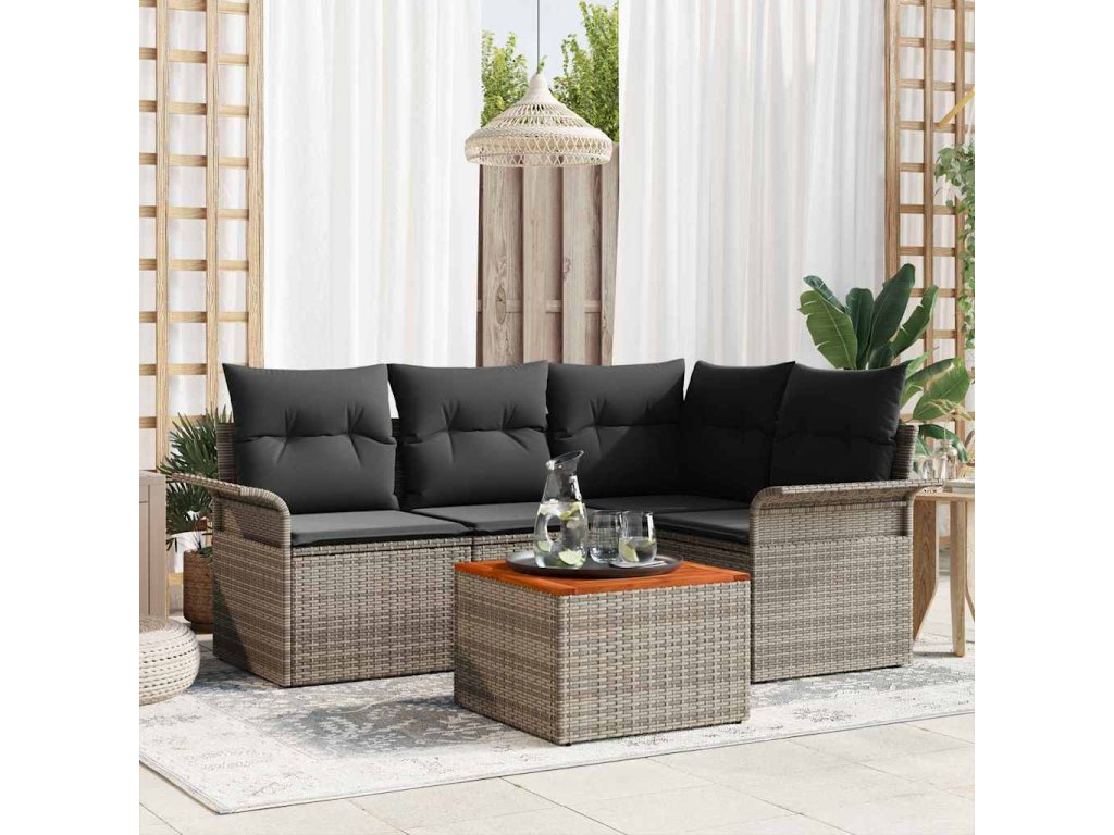 Multidom Súprava záhradných pohoviek s vankúšom 5 pcs Sivá polyratan