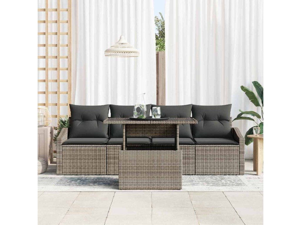 Multidom Súprava záhradných pohoviek s vankúšom 5 pcs Sivá polyratan