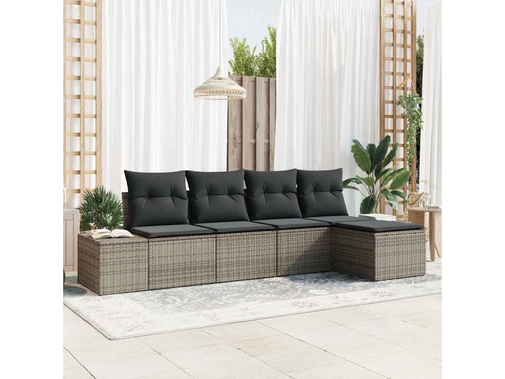 Multidom Súprava záhradných pohoviek s vankúšom 5 pcs Sivá polyratan