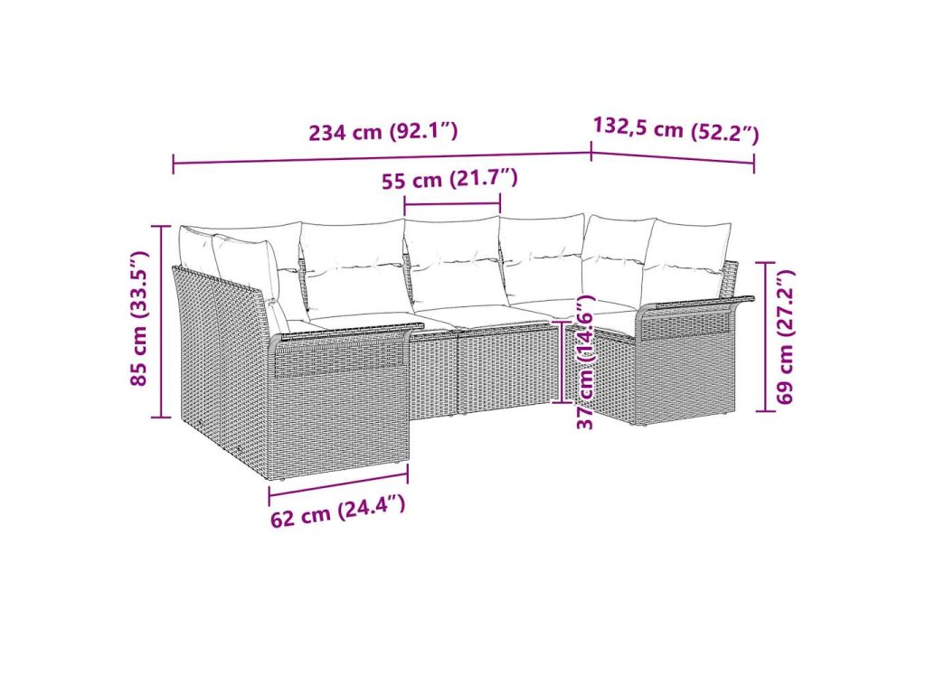 - 6 x Sedacích vankúšov: 55 x 55 cm (ŠxH)