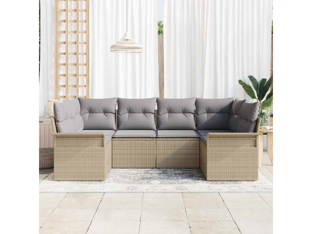 Multidom Súprava záhradných pohoviek s vankúšom 6 pcs Béžová polyratan