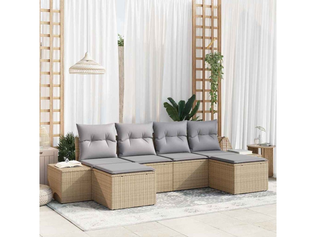 Multidom Súprava záhradných pohoviek s vankúšom 6 pcs Béžová polyratan