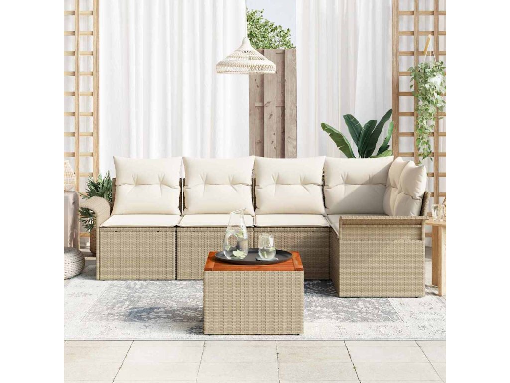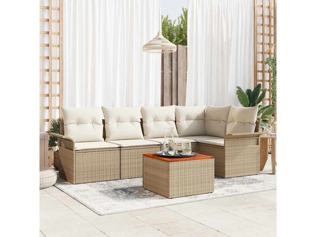 Multidom Súprava záhradných pohoviek s vankúšom 6 pcs Béžová polyratan