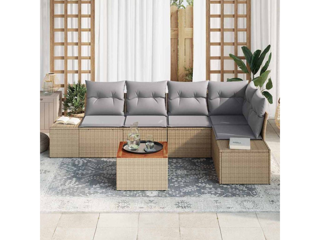 Multidom Súprava záhradných pohoviek s vankúšom 6 pcs Béžová polyratan