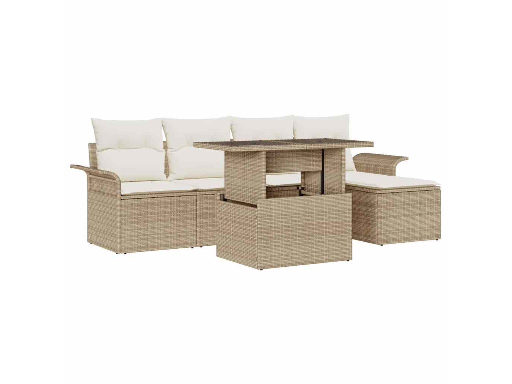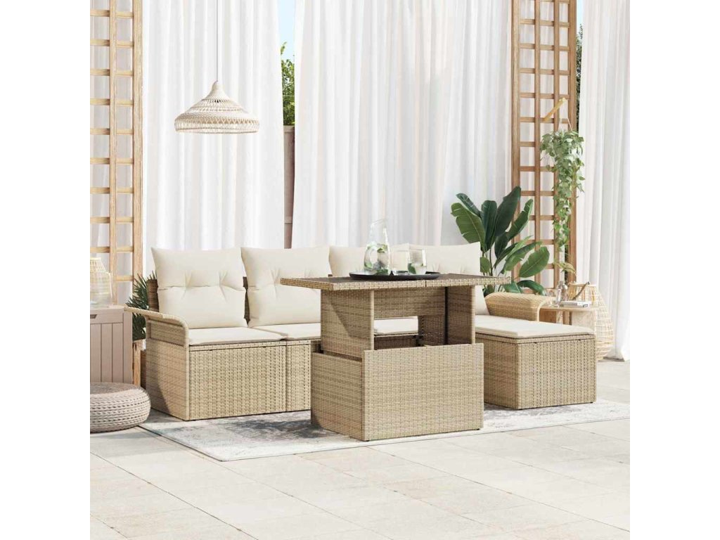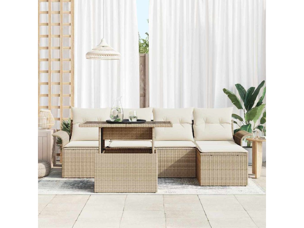 Multidom Súprava záhradných pohoviek s vankúšom 6 pcs Béžová polyratan